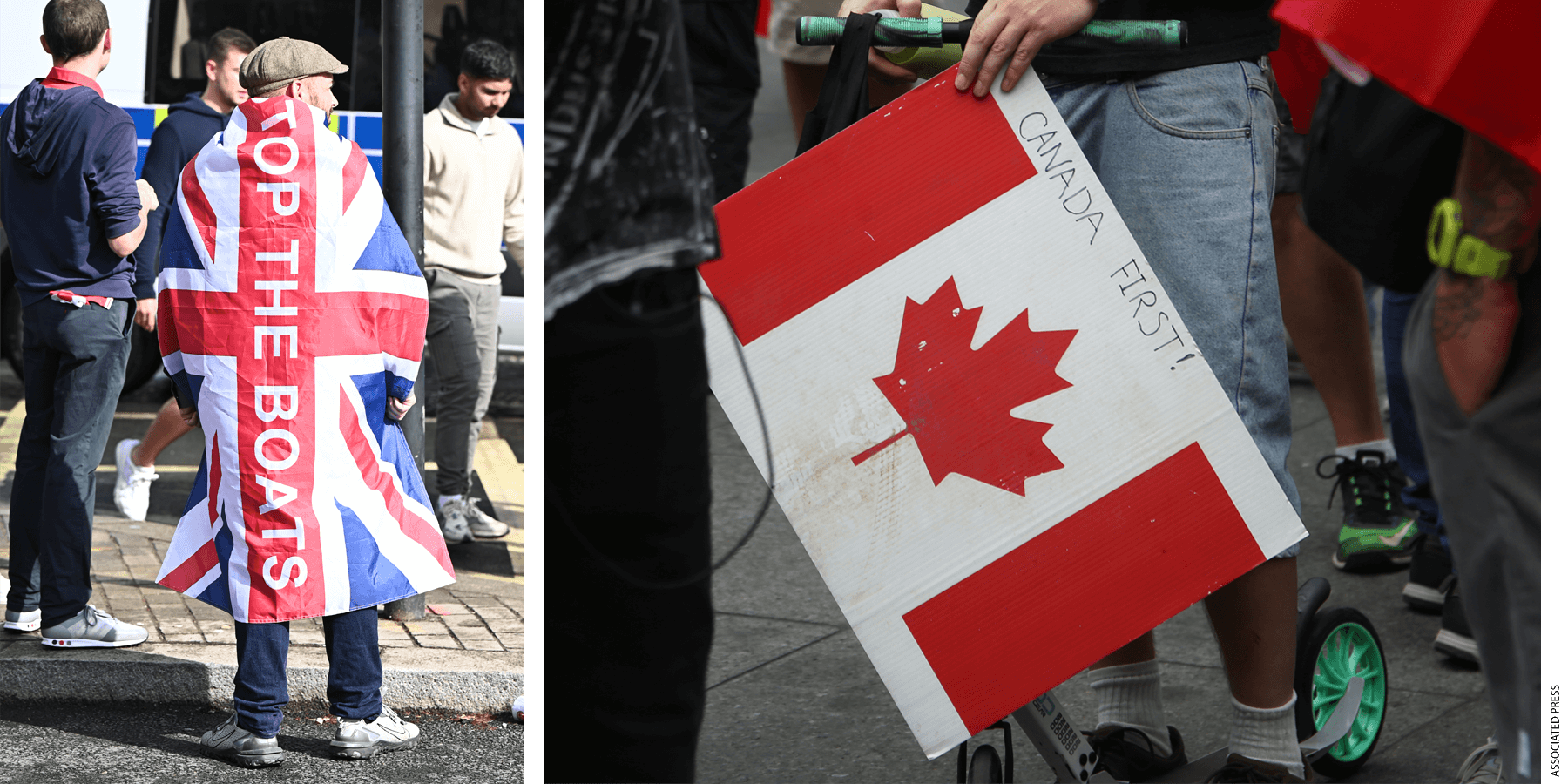 More than 100,000 demonstrators descended two weeks later on London to protest levels of immigration to the UK, where polling by the international public-opinion firm YouGov finds that 72 percent of people consider immigration levels too high—up from 44 percent three years ago.