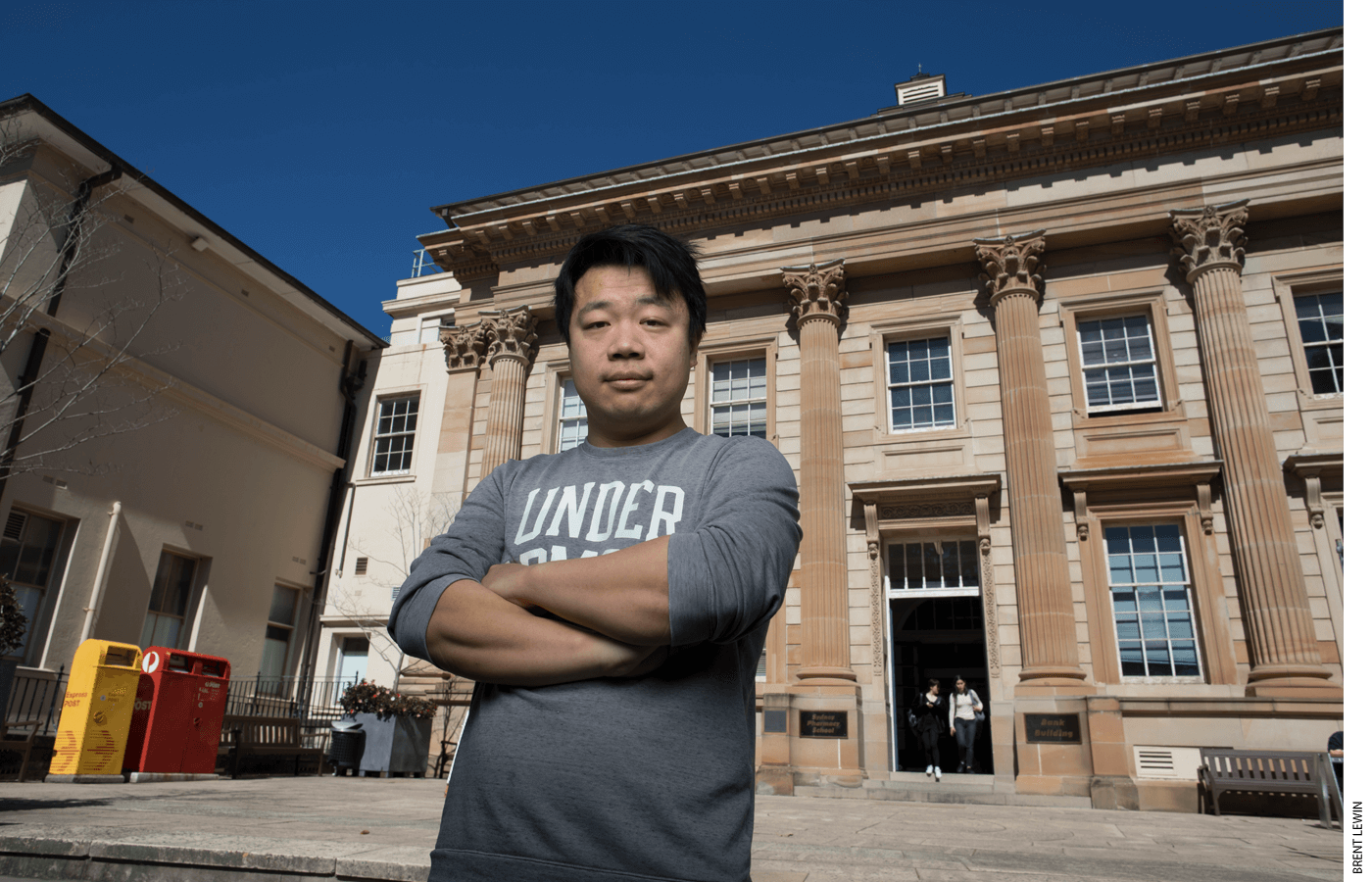 Weihong Liang gestures at his fellow students walking by on Science Road on the University of Sydney’s sprawling campus, laughing as he notes that fully half of them have—like him—traveled here to study from other countries.